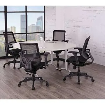 Show moreThe WorkPro® 1000 Series Ergonomic Mesh/Mesh Mid-Back Task Office Chair fuses comfort and functionality, redefining your workspace with a perfect blend of ergonomic design and contemporary styling. Crafted to accommodate professionals who are dedicated to either long hours of work or a collaborative office environment, this chair stands out with its sleek black mesh fabric allowing for enhanced breathability and support. It’s the ideal seating solution, providing the right level of comfort needed for enduring performance up to 10 hours a day. Feel the difference with its adjustable height and armrests, which deliver personalized support tailored to individual seating preferences, ensuring you can focus on your tasks without discomfort.