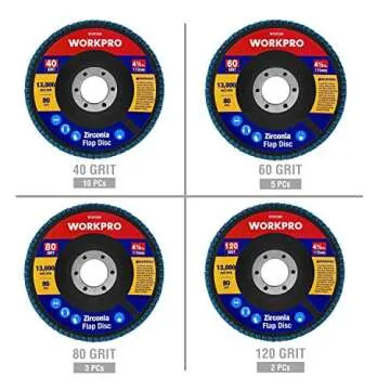 WORKPRO 20-Pack Flap Discs, 4-1/2-inch, Arbor Size 7/8-inch, T29 Zirconia Abrasive Grinding Wheel and Flap Sanding Disc, Includes 40/60/80/120 Grits