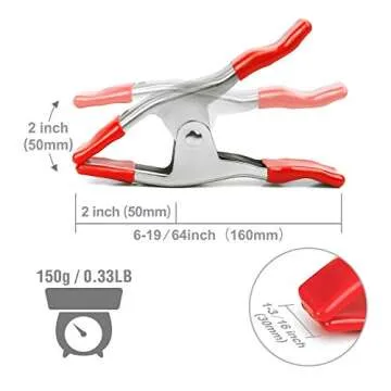 When comparing the WORKPRO 8-Piece Spring Clamps to other brands on the market, this product stands out with its heavy-duty construction and high clamping force. Many competitors utilize less durable materials and offer no ergonomic features. The WORKPRO clamps have superior grip and stability, evidenced by user reviews highlighting their reliability even in high-wind situations, making them the go-to choice for securing items in diverse conditions.