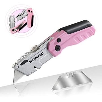Show more Introducing the WORKPRO Folding Utility Knife, a premium solution designed for those who demand functionality and ease of use without compromising on style or purpose. This vibrant pink box cutter isn't just about aesthetics; for every purchase made from January 1, 2024, to December 31, 2024, a minimum of $15,000 will be donated to Helping Women Now, making each cut symbolic of support for women's health initiatives. Crafted from robust materials, the knife features a heavy-duty zinc alloy head paired with a lightweight aluminum die-casting handle, ensuring a sturdy, dependable tool at your fingertips. Weighing in at just 4 ounces, and with convenient pocket clip design, this utility knife is perfect for everyday carry!