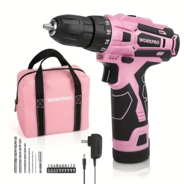 Show more Introducing the WORKPRO Pink Cordless Drill Driver Set, a unique and stylish 12V electric screwdriver that combines functionality and flair for a truly remarkable experience. This dazzling pink drill isn’t just visually appealing—it's engineered for performance, weighing only 1.8 lbs for a lightweight feel that’s perfect for both DIY novices and seasoned professionals. Its ergonomic design ensures maximum comfort, allowing users to easily handle tasks—ideal for individuals with smaller hands or anyone working in cramped spaces.