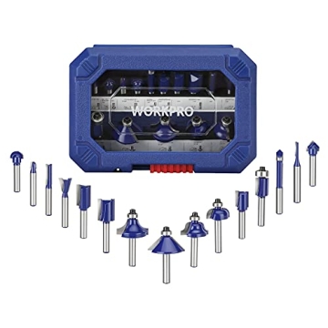 Show moreDiscover the ultimate precision tool for your woodworking projects with the WORKPRO 15-Piece Router Bits Set. Designed for both professionals and hobbyists, this set includes a variety of bits such as dovetail, mortising, and panel pilot bits, all crafted from high-quality tungsten carbide for durability and sharpness. The 1/4-inch shank ensures stability and minimizes vibrations, making every cut smooth and precise. With a robust anti-kickback design, these bits offer safety and efficiency, while the included storage case keeps them organized and protected. Whether you're working on solid woods, hard woods, chipboard, or MDF, this set is your go-to for edging, trimming, veining, and grooving.