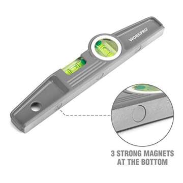 Show moreIntroducing the WORKPRO Torpedo Level Set, your new go-to tool for precise measuring and leveling across various tasks! This comprehensive 3-piece set includes three expertly designed levels: a 9" magnetic torpedo level, a 16" non-magnetic level, and a 24" non-magnetic level, giving you the versatility needed for both large and small projects. Crafted with a lightweight strong box beam frame, these levels ensure exceptional durability without compromising on ease of use. Their smooth sides not only enhance ergonomics but also make handling and positioning effortless for any user.