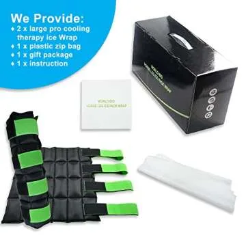 WORLD-BIO Horse Leg Ice Packs Cooling Wrap for Horse Injuries, Set of 2 Professional Cold Therapy Pack with Flexible Straps for Hock, Ankle, Knee, Ice Boots Horse Wrap 16.9'' x 16.1'', Black & Green