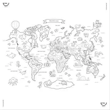 World Map Coloring Tablecloth for Kids - Washable Reusable Coloring Fabric - Ideal for Birthday Party - English World Map - Coloring Activity for Children & Adults - Size 45”x45” Giant Coloring Pages