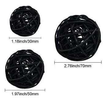Worldoor Wicker Rattan Balls Bag, Garden, Wedding, Party Decorative Crafts, House Ornaments, Vase Fillers Decorative Orbs Natural Spheres Christmas Tree. Set of 21. (Black)