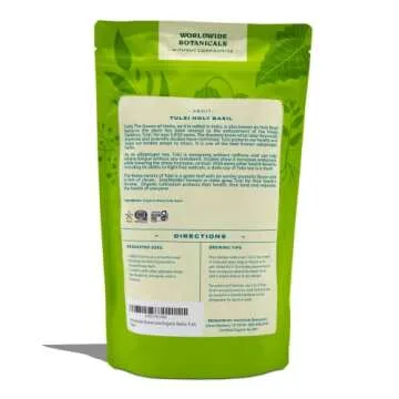 Show more Discover the exquisite flavor and health benefits of 100% Pure Rama Tulsi Loose Leaf Tea, sourced from the revered Holy Basil plant. This incredible variety showcases an earthy aromatic flavor tempered with a hint of cloves, offering a tea experience that is both soothing and invigorating. Brew it pure or venture into a symphony of flavors by blending Rama Tulsi with other herbs such as peppermint, ginger, or ashwagandha to create your own delightful herbal infusion.