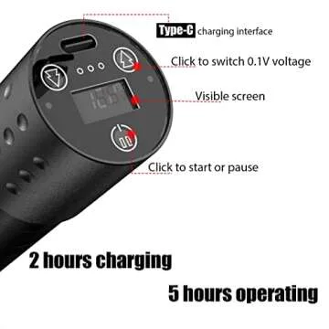 The pen also features a convenient LED touch display at the top, which enables artists to easily monitor and adjust voltage settings in real-time. Say goodbye to the hassle of maneuvering bulky devices while working as you can fine-tune settings effortlessly.