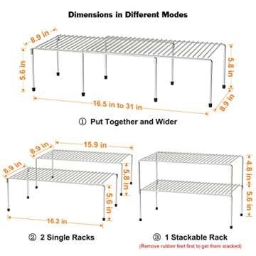 WOSOVO Set of 2 Kitchen Cabinet Organizer and Storage Shelves Stackable Expandable Storage Racks with Anti-slip Liners for Cabinet Pantry, Silver