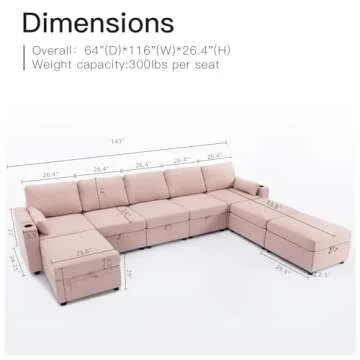 WOTSTA Modular Sectional Sofa Couch with Large Storage, Convertible U Shaped Sofa with USB Ports & Cup Holders, Deep Seat Couch with Wide Chaise, 8 Seat Sectional Couches for Living Room (Pink)