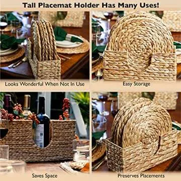 - Exclusive Holder Included: Enjoy the added convenience of a beautifully designed multipurpose holder. When not in use, stack your placemats neatly in their stylish basket, which can double as an organizer or decorative piece.