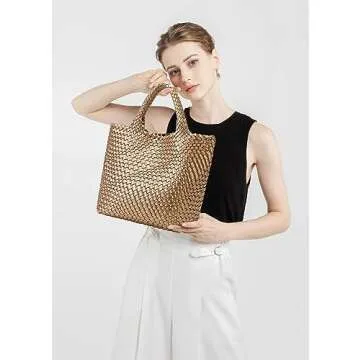 Show more This stunning Vegan Leather Tote from Queenoris is the ultimate accessory for the modern woman, combining fashion and functionality in one chic package. Crafted with meticulous attention to detail, this handbag symbolizes the laid-back, stylish lifestyle many yearn for. Made from high-quality vegan leather, it represents a commitment to sustainability without compromising on quality or style. Whether you're heading for a day out at the beach, a weekend getaway, or simply running errands, this tote is sure to complement your ensemble effortlessly.