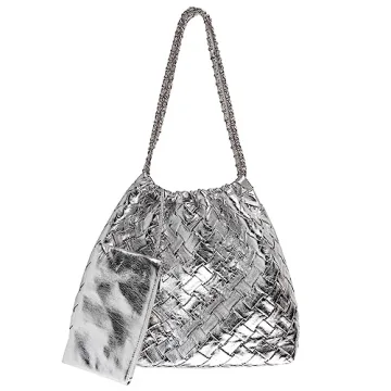 Woven Leather Hobo Handbag for Women with Purses, Large Woven Tote Bag Shoulder Bags 2pcs Purses Set