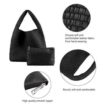 Woven Tote Bag for Women Soft Leather Tote Bag with Purse Large Capacity Handbags Fashion Woven Shoulder Bag