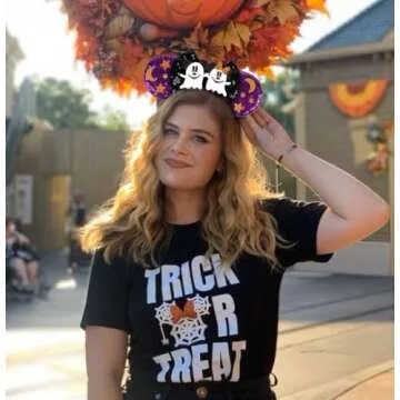 WOVOWOVO Halloween Mouse Ears Headbands for Women Girls, Bow Decoration Hairbands with Ghost Purple Sequin Headband Party Cosplay Hair Accessories Costume
