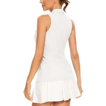 WOWENY Womens Sleeveless Golf Shirt Ruffle Polo Shirts Moisture Wicking Golf Apparel Slim Fitted Golf Tennis Tank Tops White L