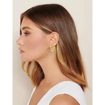 WOWORAMA Matte Gold Statement Earrings for Women Textured Seashell Earrings Vintage Ocean Wave Sea Earrings Boho Geometric Stud Earrings Minimalist Irregular Earrings