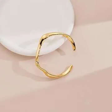 WOWORAMA Wave Gold Cuff Bracelets for Women Round Irregular Open Bangle Bracelets Simple Adjustable Gold Mobius Bracelet - Gold Round Wave Cuffs
