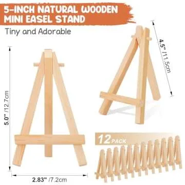 Show moreIntroducing the WOWOSS 12 Pack 5" Mini Wood Display Easel, your perfect solution for elegant and functional display needs! Crafted from high-quality, natural wood, these miniature easels are designed to hold small canvases, photos, business cards, and more—effortlessly enhancing any setting with their beautiful finish. With 12 easels in one pack, you'll have plenty to showcase your creativity at events, gatherings, or even in your personal workspace.
