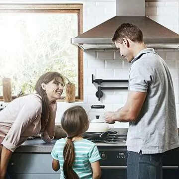 WOWOW Pot Filler Faucet Matte Black Commercial Wall Mount Stove Faucet, Brass Pot Filler Folding Faucet Over Stove, Kitchen Pot Faucet with Double Joint Swing Arms