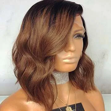 Wowsexy Hair Ombre 1B/30 Wavy Short Bob Lace Front Human Hair Wigs for African American Women Brazilian Virgin Hair Two Tone Lace Wigs with Pre-plucked Hairline (12 inch Lace Front Wig, 1B30 Wavy)