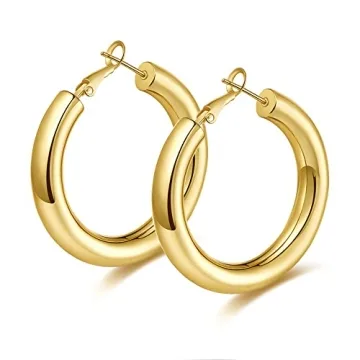 Show moreElevate your style with WOWSHOW's Large Chunky Thick Gold Hoop Earrings, designed for women who love to make a statement. These earrings combine elegance with a bold design, featuring a 5mm thickness and sizes from 20mm to 50mm. Perfect for any occasion, they're crafted with high-polished 14k real gold plating for a luxurious shine. The secure click-top clasp ensures they stay in place, offering both comfort and durability. Lightweight and hypoallergenic, these earrings are suitable for sensitive ears, making them a must-have accessory for any fashion-forward woman.
