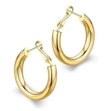 Show moreIntroducing the WOWSHOW Small Chunky Thick Gold Tube Hoops Earrings, a perfect blend of elegance and comfort that will become a staple in your jewelry collection. These beautifully crafted earrings feature a distinctive 5mm thick hoop design and come in various sizes ranging from 20mm to 50mm, catering to every style from casual to formal. Each pair is expertly high-polished and 14k real gold plated, ensuring a radiant shine that adds a glamorous touch to any outfit you wear.