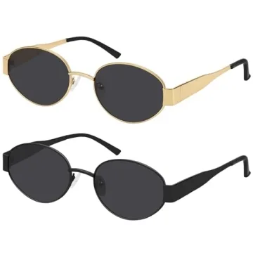 WOWSUN Trendy Oval Sunglasses for Women 2024 Retro Classic Shades UV400 Protection 2pack-Gold Gray+Black Gray