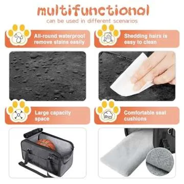 WOYYHO Pet Dog Car Seat for Small Dogs with Safety Belt and Top Mesh Cover, Large Center Console Dog Car Seat for Puppy Cat, Pet Dog Booster Seat Waterproof Anti-Slip PU Leather Puppy Car Seat 0-20lb