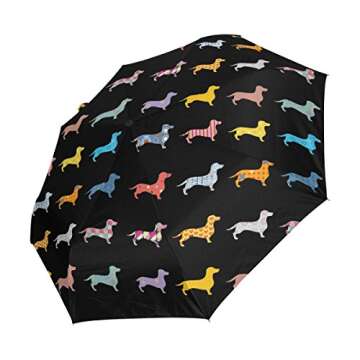 WOZO Black Cute Dachshund Dog 3 Folds Auto Open Close Umbrella