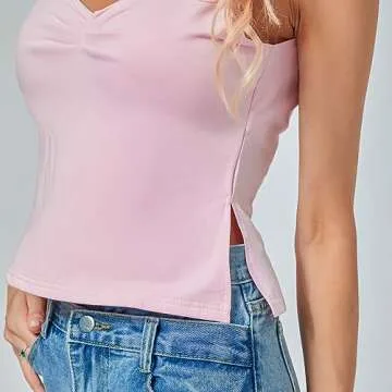 WPNAKS Women’s Sleeveless Strappy Tank Top Sexy Pleated Bustier Sweetheart Neck Going Out Crop Tops Y2K Basic Slits Cami Shirt (as1, Alpha, m, Regular, Regular, Pink)