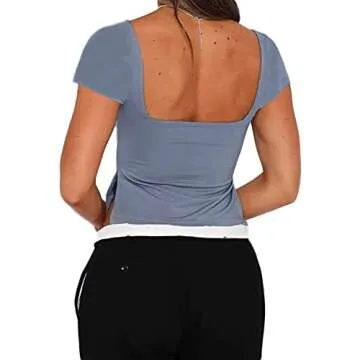 WPNAKS Womens Sweetheart Neck Crop Top Cap Sleeve Going Out Tops Backless Sexy Cute Summer Baby Tee Y2k Shirt