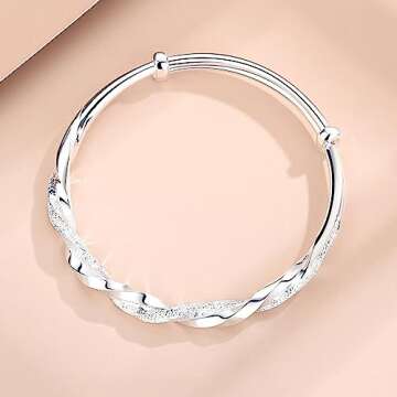 Elevate your accessory game with the WPPHXY Solid 925 Sterling Silver Adjustable Bangle Bracelet. Expertly crafted from high-quality 925 sterling silver, this handmade bracelet serves not only as a stunning fashion statement but also as a versatile piece that can complement any outfit. The elegant teardrop cuff design featured in this bangle allows for a comfortable fit due to its open frame. Its push-pull adjustment ensures that it meets diverse size requirements, making it easy to wear...
