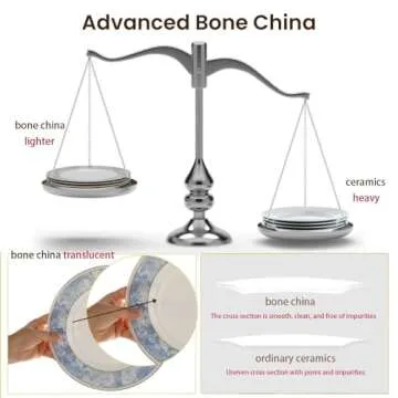 Show more The exquisite WPSLNWO bone china dinnerware set combines elegance and functionality to elevate your dining experience. Crafted meticulously from high-quality bone porcelain, this tableware is not only lightweight and transparent but also embodies a history of nobility and high status. Once reserved for the British elite, this tableware symbolizes luxury and refined taste, making it the perfect addition to any home. Each piece has been created through an advanced firing process at 1250 degrees Celsius, ensuring that it is both strong and durable while maintaining an aura of sophistication.