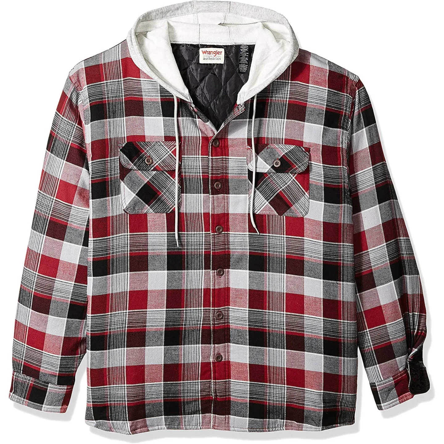 polyester padding for more durability and added warmth. FOR... Show more Buy Wrangler Authentics Men's Long Sleeve Quilted Lined Flannel Shirt Jacket with Hood, Biking Red, Small and other Casual Button-Down Shirts at Amazon.com. Our wide selection is elegible for free shipping and free returns.