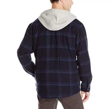 Wrangler Authentics Men's Long Sleeve Quilted Lined Flannel Shirt Jacket with Hood, Navy, Large