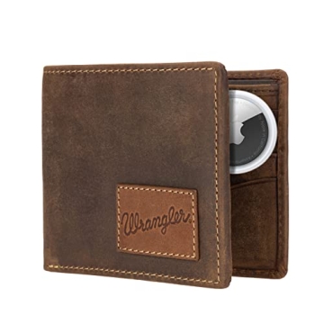 Wrangler Men's Bifold Wallet - Genuine Leather, RFID Blocking, with AirTag Holder