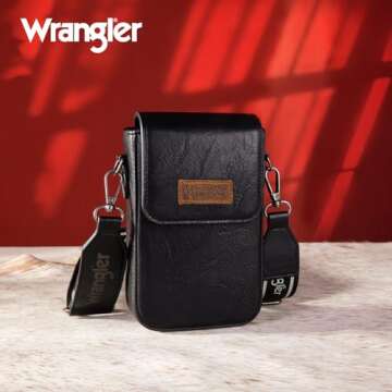 Wrangler Mini Crossbody Bags for Women Cell Phone Purse Crossbody Western Cellphone Wallet Bag with Credit Card Slots WG118-204BK