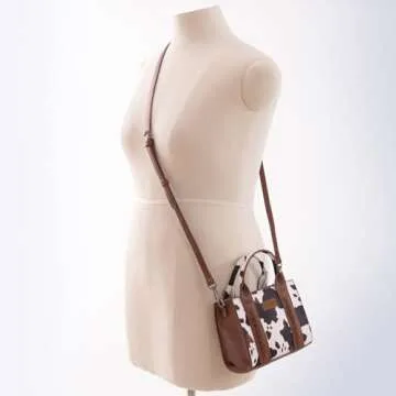 Made from vegan leather, with upgraded hardware and a sturdy zipper, Wrangler cow print crossbody purse will be your next everyday purse.