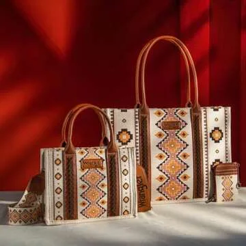 Wrangler Purses and Handbags for Women Boho Aztec Tote Bag Hobo Shoulder Top Handle Handbags with Wide Guitar Strap Fall Collection Birthday Gift WG2202-MIXWCF