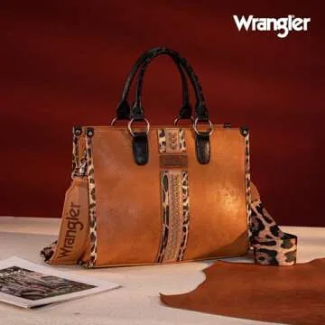 Show moreIntroducing the Wrangler Tote Bag for Women, an exquisite blend of style and functionality that perfectly captures the spirit of the wild. This remarkable shoulder bag features stunning leopard print elements that not only highlight its vibrant personality but also merge effortlessly with classic design cues. Crafted with meticulous attention to detail, the bag showcases woven accents on the carry strap, ensuring comfort and durability for everyday use. With dimensions of 13" x 4.5" x 10" (L x W x H), this bag is both spacious and stylish, making it a fantastic addition to any outfit.