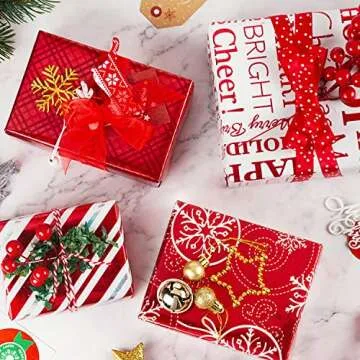 Crafted with premium quality paper materials, this wrapping paper is thick, durable, and resistant to tearing or ripping, ensuring that it holds up even in the hands of enthusiastic wrappers. The added gridlines on the reverse side make for precise cutting, allowing wrapped presents to look immaculate. The attraction of vibrant colors, especially the deep, rich reds that shimmer beautifully, will catch anyone's eye as they unwrap their gifts.