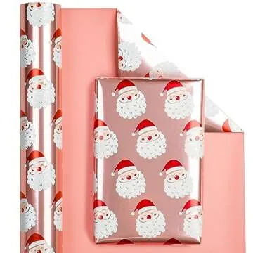 WRAPAHOLIC Reversible Christmas Wrapping Paper - Mini Roll - 17 Inch X 33 Feet - Santa Claus and Solid Rose Cold Design with Metallic Foil Shine for Chrsitmas, Holiday, Party Celebration