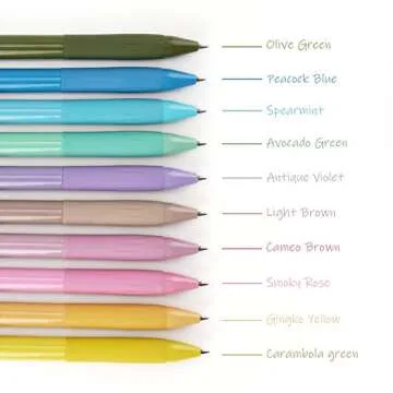 Show more Discover the world of creativity and expression with this set of unique vintage color gel pens that are sure to inspire your artistic endeavors. These vintage-inspired tones provide the perfect palette for journaling, sketching, or organizing your thoughts. Each pen features a 0.5 mm bullet tip that writes smoothly and delivers consistent ink flow, ensuring that every stroke is effortless. No more worries about skips or bleeding; your written work will always be neat and professional.