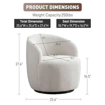 The Wrofly Swivel Barrel Chair has a load capacity of up to 250 lbs, ensuring stability for all users.