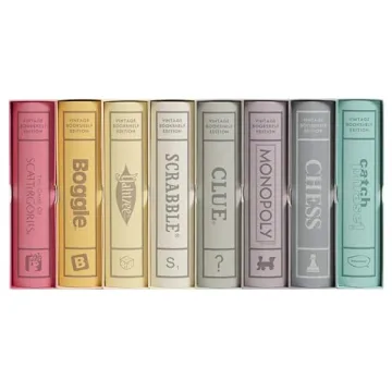 Show more Bring the joy of classic gaming into your living space with the WS Game Company Collection of 8 Vintage Bookshelf Edition Board Games. This exquisite collection includes crowd favorites like Scrabble, Monopoly, Clue, Yahtzee, Catch Phrase, Chess, Scattergories, and Boggle, all presented in a beautifully designed bookshelf format. Each game is crafted with durable materials and covers that showcase vintage graphic designs inspired by their iconic editions. It’s not just a series of games; it's a stylish addition to your home that encourages family togetherness and game nights filled with laughter and strategy.