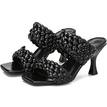 WSKEISP Women's Braided Heels Sandals Square Stiletto Mules Slip On Open Toe Backless Heeled Slippers Fashion Sexy Dress Wedding High Heel Slides