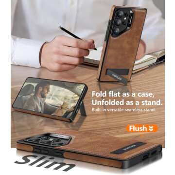 Show more Introducing the ultimate phone protection and functionality solution for the Samsung Galaxy S25 Ultra (2025 Release)! This elegantly designed business case is crafted to elevate both the style and usability of your device. Made from premium PU leather, coupled with a durable TPU frame, this case not only provides a luxurious appearance but also ensures a superior grip. The innovative invisible stand is a standout feature; it can be adjusted between 40° and 120° for perfect viewing angles in both portrait and landscape modes. Whether you're enjoying a movie or attending a virtual meeting, this case has you covered.