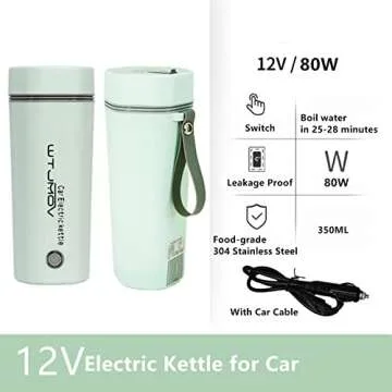 Show moreIntroducing the WTJMOV 12V Car Electric Travel Kettle, your ultimate companion for refreshing beverages during those long road trips. This innovative kettle is more than just a car accessory; it seamlessly transforms travel into a gourmet experience by providing hot water for tea, coffee, or even preparing milk for your little one. The sleek light green design, combined with its multifunctionality as both a kettle and a vacuum cup, makes it an essential item to have in your travel gear. With its durable construction and practical features, you’ll find it to be a trustworthy ally on every journey.
