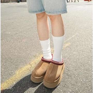 Show more Introducing the Wtoky Women's Slippers Platform Mini Boots, the ultimate fusion of comfort, style, and utility! Designed as a versatile addition to your footwear collection, these short ankle boots boast a lush fur fleece lining for unparalleled warmth and comfort. Crafted from high-quality materials, these slippers are not just for lounging at home; they're stylish enough to wear outdoors, making them a perfect choice for errands, casual outings, or cozy evenings at home. The sleek chestnut color lends a touch of sophistication, allowing you to effortlessly pair them with any outfit, from loungewear to winter chic.